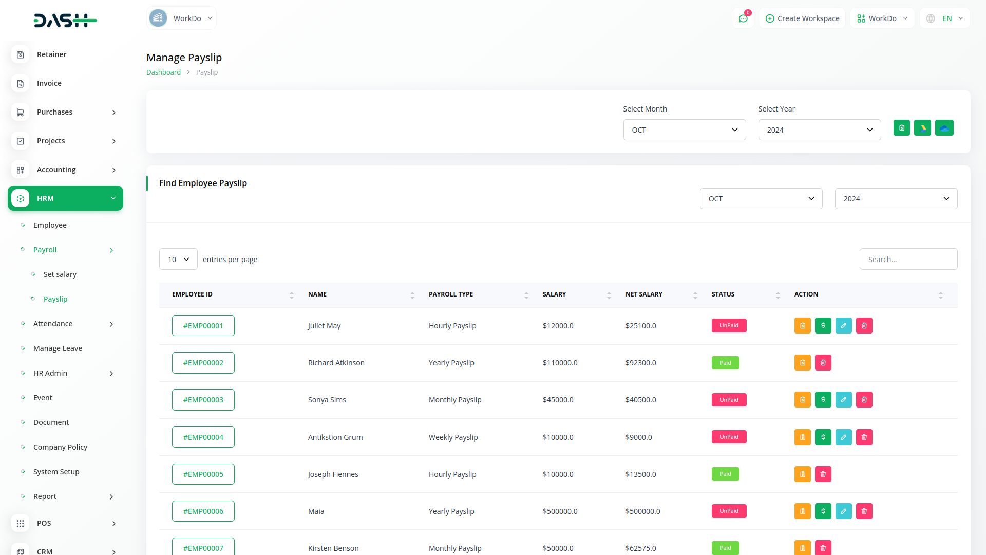 You can generate monthly payslips and make bulk payments through easy clicks. You could also change the status of the payslip with an easy CTA. An employee could view the breakdown of their salary components.